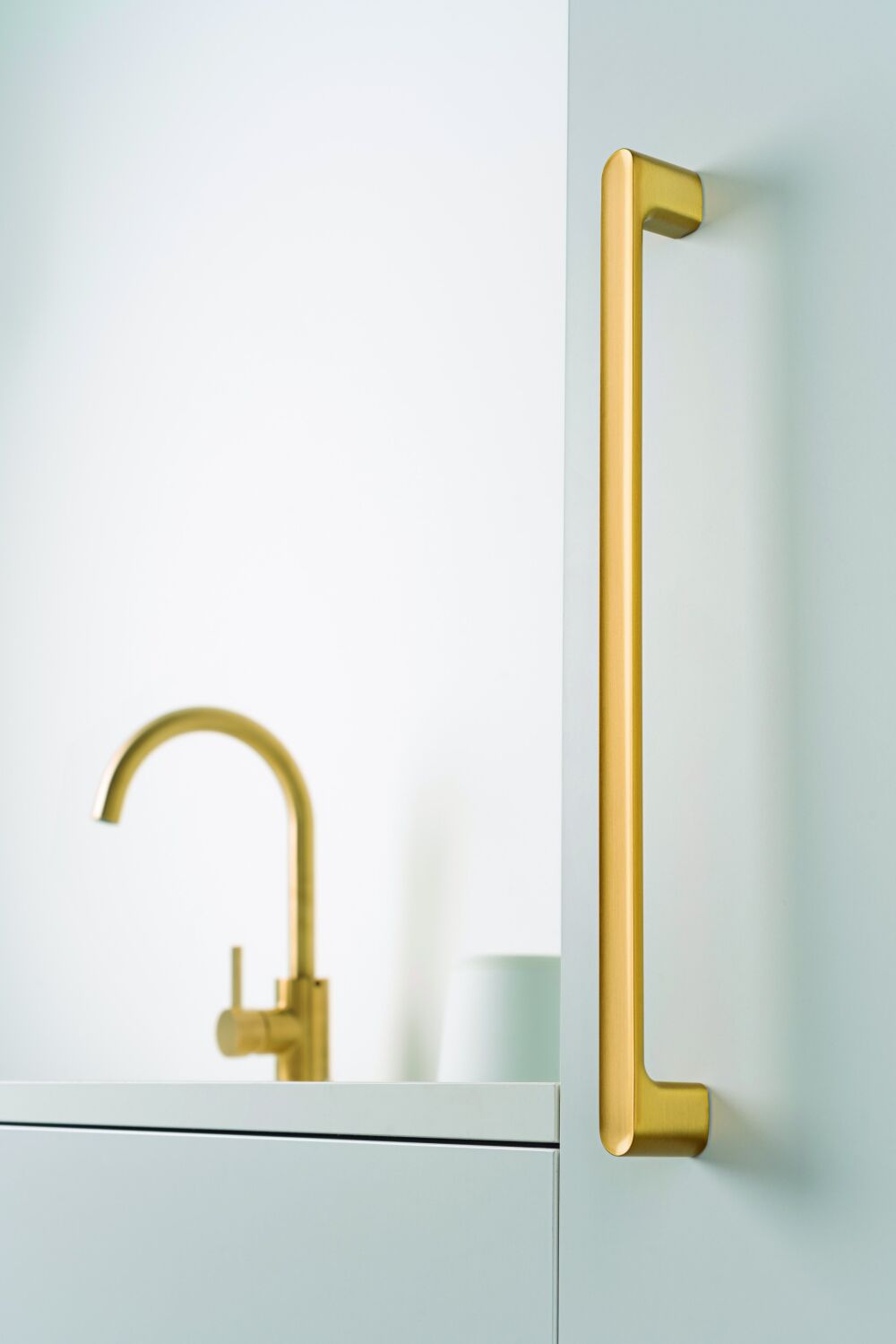 Op voorraadGreep Luv Mat messing geborsteld de greep is leverbaar in 2 boorafstanden