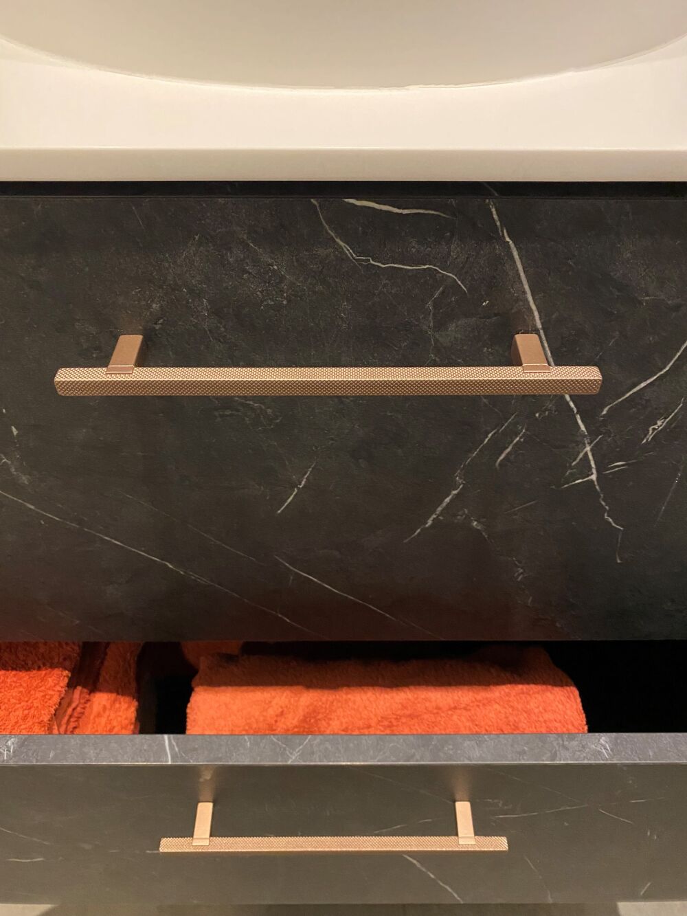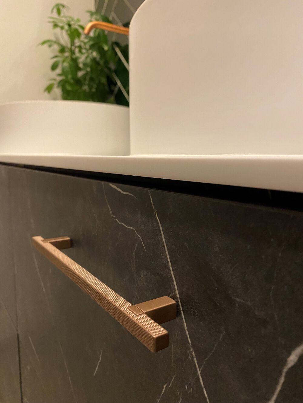 Een elegante touch voor je meubels: de bronskleurige handgreep met structuur